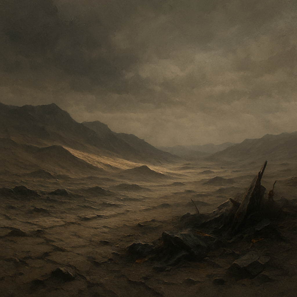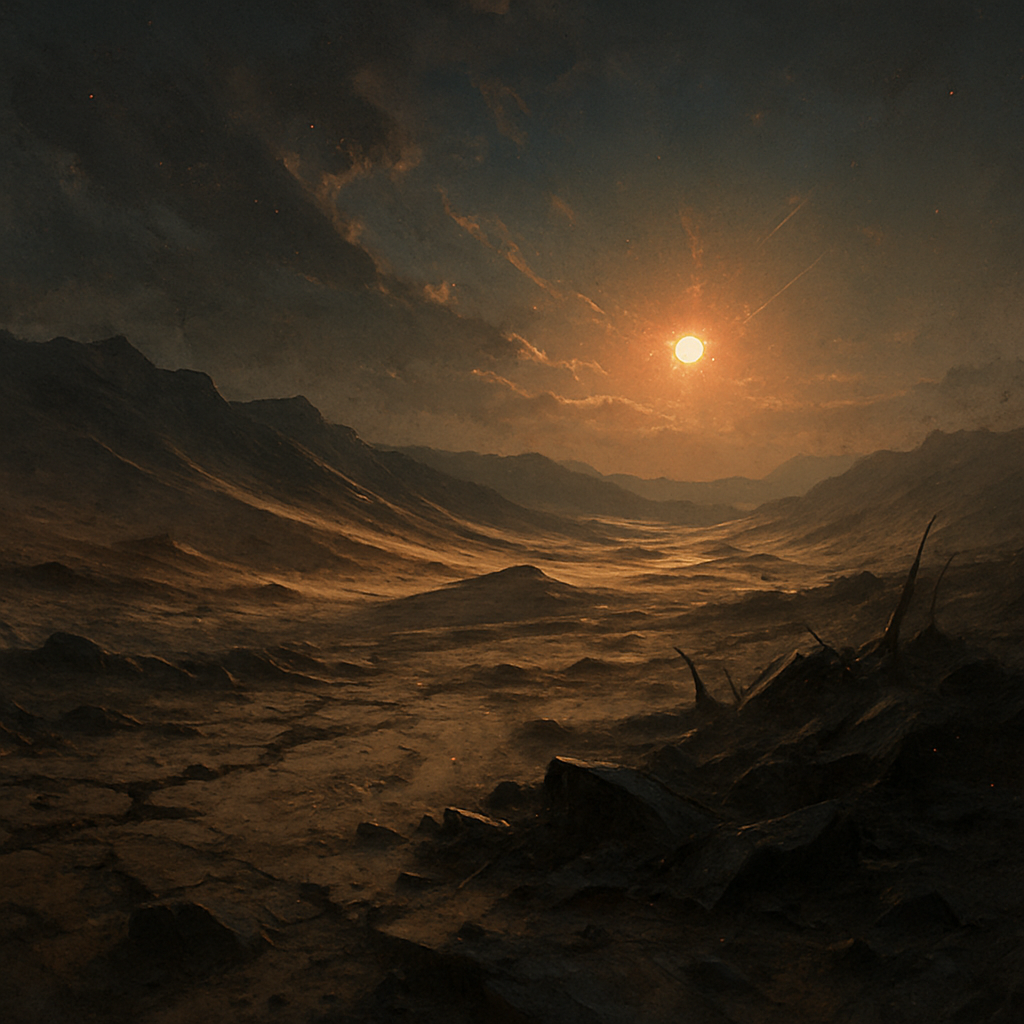 Un ciel dégagé, une lumière dure qui traverse les vents secs et sableux. L'environnement est hostile mais stable.